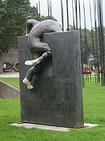 彫刻の森美術館は終点までモノレールに乗って、ケーブルカーに乗り換えて、 さらに箱根登山鉄道で一駅行けば着くはずです。 ケーブルカーにも乗ってみたかったのですが、運賃が本当に高い。 あきらめて桃源台駅に戻って車で行くことにしました。途中、コンビニで昼飯を買い込み、彫刻の森でお弁当にして、2ランク(電車代と昼食代)安上がりになりました(^^;。オープンエアーミュージアムですが本当に広い。鯉のいる池や、迷路もあります。入ってまずは腹ごしらえ。次に鯉のえさを買おうとして「ちびっこピカソに挑戦」というイベントにはまりました。お皿やマグカップに絵を描き、受付けに出すと紫外線硬化樹脂を塗って紫外線を当てて固めてもらえます。