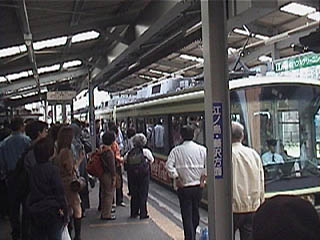 観光客でホームが長蛇の列になっていました。 地元の人は迷惑なことでしょう。