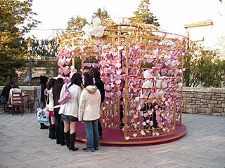 メッセージカードに思いを書き込んで、絵馬のように飾っていました。