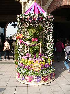 スプリング・カーニバル開催中の東京ディズニーシー。園内あちこちに花の飾りがあります。