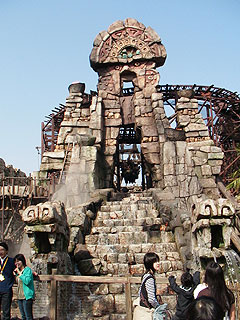 コンピュータ制御で自ら走る、新しいタイプのジェットコースター。乗り物からコンプレッサーのカタカタ音がしました。