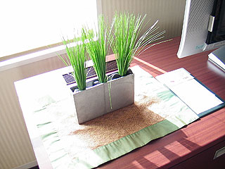 TVの横に置いてあったグリーン。中に黒い石がつまっています。この下は冷蔵庫。350mlのビールが\500。
