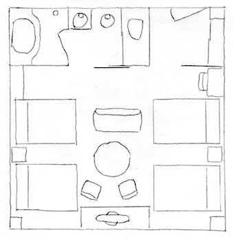 部屋の間取りはこんな感じ。
