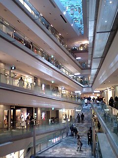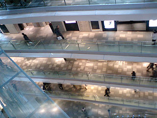 らせん状に、下から上までウィンドウショッピングしながら上がって(下がって)行けます。