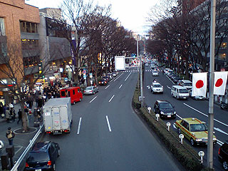 この日(1/13)は成人式前日。表参道には国旗がかかっていました。