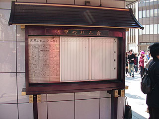浅草のれん会が交番の裏に作った伝言板。携帯が普及した今、書き込む人は皆無のようです。