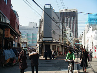 浅草寺の裏はごちゃごちゃしています。右側は「花やしき」ですが、東ゲートは工事中で入れません。