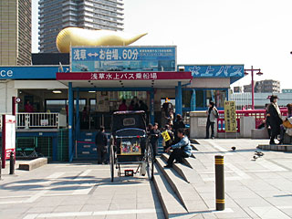 ここが乗り場です。後ろに写っているのは、アサヒビールのモニュメント。