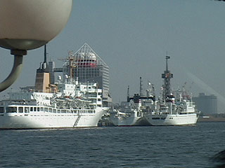 乗ってきた船(アワータウン)とレインボーブリッジ