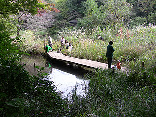 子供たちが(いけないのでしょうけど)ザリガニを取っていました。この自然教育園では、落ちているどんぐりも「虫のえさになるので持って帰らないように」と書いてあります。