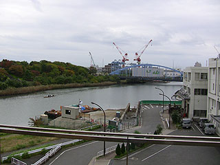 3Fの展望室から見た中川。このあたりに昔、江戸を出入りする船を取り締まるために、中川船番所があったのだそう。