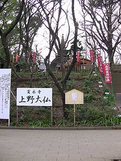 上野大仏、階段の上にあります。