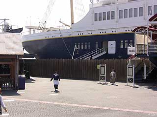 コロンビア号の船尾にある海底展望室に10/01新しいアトラクション「タートル・トーク」が出来るそうで、工事中の様子。