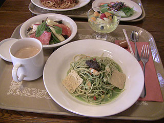 カフェ・ポルトフィーノで昼食。ポルトフィーノ・パスタセット(\1,780)。エビとオリーヴのジェノヴァソース。