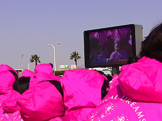 当日は、自分たちでは出来た人文字は見られませんでしたが、次の日のTVで放送されていました。これはポンチョを着たところ。