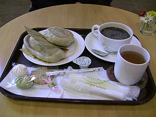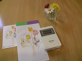 カフェでお茶にしました。机の受信器は、P電工のECE1612。