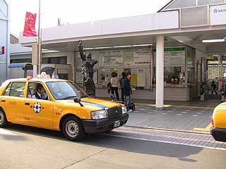 最寄り駅は「上井草」。駅前に立つのはガンダムの像。