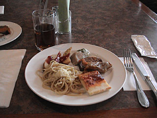 朝食券を昼食に使っても良いというので、朝はコンビニ(ホテルの前にミニストップあり)で買ってきて、昼食で使いました。昼もバイキングですが、昨夜のディナーの時とメニューはあまり変わりませんでした。