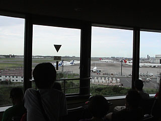 成田空港に離着陸する飛行機が見えます。ボランティアの人がマイクで解説していました。4Fは展望レストラン。