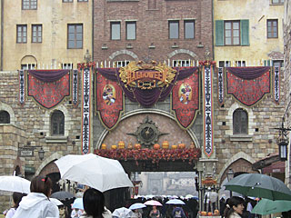 雨天バージョンのレジェント・オブ・ミシカ。リドアイルの最前列で見ました。雨が降っているので、傘を差して立ち見です。