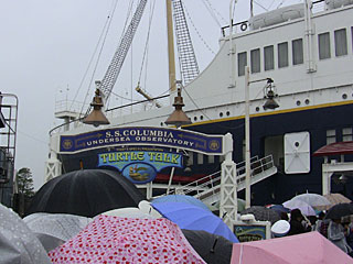 10月から始まった新アトラクション「タートル・トーク」にさっそく並びました。60分待ちの表示で、実際は45分くらい待ちました。