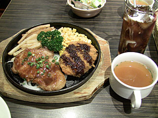 お茶の水駅前のビアホールでランチ。ポークジンジャー〜ステーキソース〜\900。(ドリンク\100)