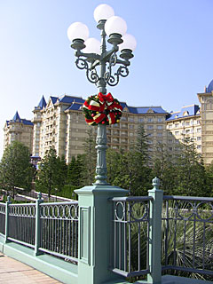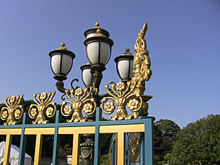 東京ディズニーランドの照明とフェンスの塗装はこんな感じ。塗装の色はこっちの方が落ち着いている、と妻。