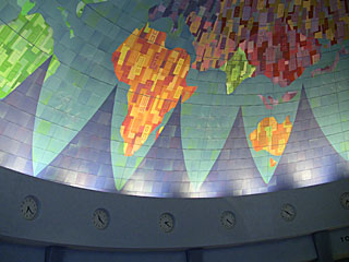 建物の天井に世界地図が描いてあります。アフリカ部分に描かれたドアの取っ手に隠れミッキー発見!