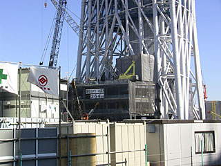 前回来た時はまだ90mでしたし、下の部分に足場が組んでありましたが、今日は264mまで高くなっていて、一番下の部分から白い鉄骨がきれいに見えるようになっていました。