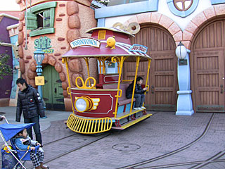 止めてしまった路面電車「ジョリートロリー」が、記念撮影用に固定されて置かれていました。