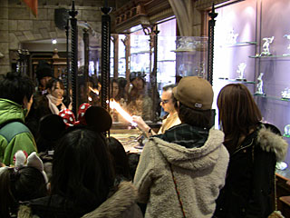シンデレラ城内にあるガラス細工の店、「ガラスの靴」。ガラス加工の実演をしています。