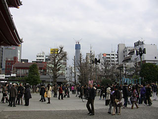浅草寺宝蔵門から見たスカイツリー。これの約2倍に伸びる予定。