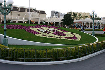 ディズニーランド。エントランスの花壇は、いつもとちょっと違った立体的なミッキー。