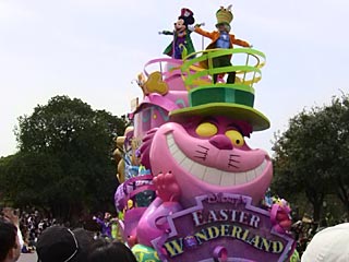 スペシャルパレード「イースターワンダーランド」。途中で止まった時にミッキーが5回着替える(?)面白いパレード。