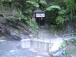受付の建物でチケットを買い、川を渡った先に入り口があります。奥から冷気が流れて来ます。この日の洞内温度は8℃。トレーナーを着てちょうど良かった。
