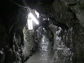 入り口からしばらくは狭く、頭上注意。蛍光灯で結構明るい。