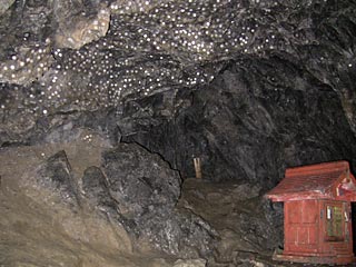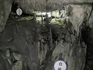 印象:思ったより明るかった。入り口は狭く低く、風が吹いていて、入っていくと奥にとても広い空間が 広がっていました。鍾乳石はあるのですが、黒ずんでおり、当方が想像していた白い鍾乳石ではありませんでした。割引券を印刷して行って\100引きで\500。 行く途中の日原街道もすごい。一部は完全に一車線。当方は早めに行ったので(9時ごろ着) 帰り道に一回バックしただけで、うまくすれ違うことができました。 ウィークディはバスが鍾乳洞まで来るのですが、土日は混雑して定時運行が保てないのか? 東日原止まりなので、徒歩25分だそうです。この日も道路を歩いている老若男女をたくさん(特に帰り道)見ました。
