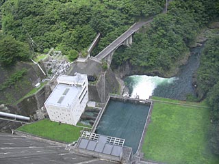 ダムから下を覗くと発電所が見えます。