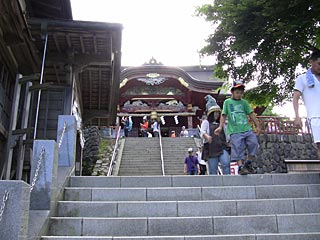 せっかく近くまで来たので、御岳神社(武蔵御嶽神社)にお参りすることにしました。 ケーブルカーとリフトがあるので、これを乗り継げばお手軽に御岳神社まいり出来るのかと思いましたが、 山道を一度下って、参道の坂道を登り、階段を登ってやっと到着しました。1km近くあったと思います。 この日は晴れており、雲はほとんどなかったのですが、遠くは青っぽくかすんでいて、西武ドームは はっきり見えたけど、新宿の高層ビル群は見えなかった。