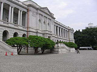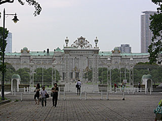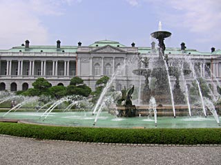 この迎賓館は、東宮御所(皇太子の住まい)として、日本近代建築の父ジョサイア・コンドルの弟子である宮廷建築家片山東熊の設計で1909年に建設され、その後国会図書館として使われたりしていましたが、1974年に国賓、公賓の宿泊施設としてリニューアルされました。また、最近(2009.12)、国宝に指定されました。