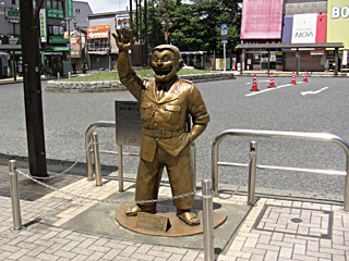 亀有駅北口に出ると、待ち合わせしていたように立っている(等身大よりちょっと小さな)「両津勘吉像」。