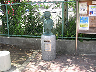 ゆーろーど亀有の三角地帯にあった「少年両さん像」。