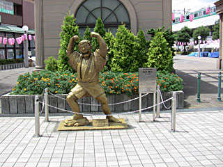 駅に戻ってきて南口「祭り姿像」。こちらも後ろの広場でお祭り準備中。