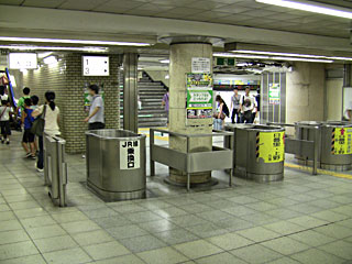 ←北千住のJRとメトロの乗り継ぎ口。改札が残されていますが、フリーパスで珍百景状態。