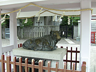 天神様(菅原道真公)なのでウシが祀られていました。