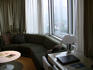 部屋はこんな感じ。サイドテーブルとチューリップチェアはエーロ・サーリネンのデザインだそうです。