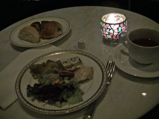 90分間スイーツ食べ放題です。スイーツ以外にも、ロールパンやチーズチキンカツみたいな「シェフの気まぐれ」メニュー、サラダ、オードブルなど、色々ありました。コーヒー・紅茶も飲み放題。アルコールは別ですが、ビールが\500と特別料金になっていました。我々は、18:00〜19:20頃までいましたが、19:00頃からピアノの生演奏が始まりました。カクテルラウンジが本格的に使われるまでの17:00〜20:00をスイーツ食べ放題でうまく埋めているのだと思います。