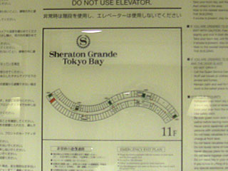 yoyaQで予約してシェラトングランデ東京ベイに泊まってきました。メールでお得なプランがyoyaQから送られて来たのです。メールで送られて来たプランは「★短縮割引ステイ【室数限定】舞浜シェラトン グッドプライス☆室料のみスタンダードルーム」\21,000。早速予約(^^;。その後、yoyaQのWEBページで調べたら、同じショートステイで朝食付きのプランが+5,000であったので、変更しました。安い代わり、チェックインが17:00、チェックアウトが11:00、というのがお約束だと思っていたのですが、舞浜駅前のウェルカムセンターでチェックイン手続きしたら、何と、15:00にチェックイン、次の日12:00のチェックアウトでOK。しかも3F〜5Fではなく、11Fのクラブレベルに無料でアップグレードしてくれました。休前日なのに、良いのでしょうか?