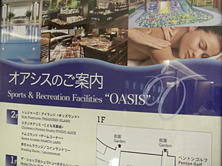 オアシスには、プールとジム、大浴場、子供用のボールプール、ゲームセンターや写真館などがあります。我々は、プールとジム、大浴場がチェックアウト後も営業終了まで使い放題のオアシスパス(\1,600)を購入。