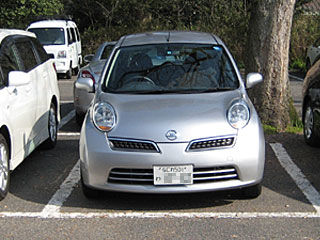 クーポン券2枚(\6,000分)でSクラスのレンタカーを予約していました。マツダレンタカーで借りた「なにわ」ナンバーの日産マーチ。100kmまでガソリン代も込み(満タン返し不要)です。